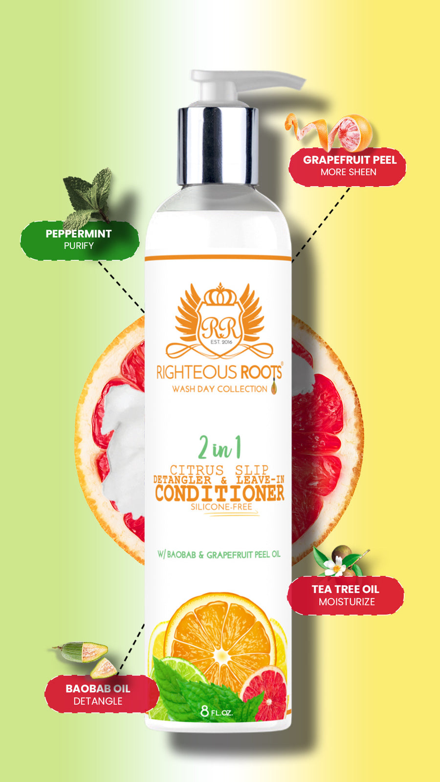 Citrus Slip Conditioner doubles as both a detangler and leave-in conditioner rendering your hair soft, moisturized, and knot free.